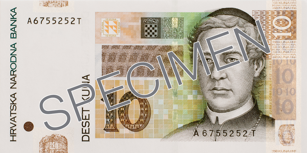 The commemorative 10 kuna banknote was issued to mark the 10th anniversary of the kuna, on 30 May 2004.