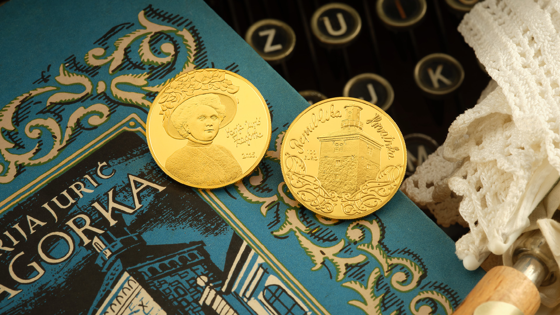 The Croatian National bank has issued "Marija Jurić Zagorka" gold and silver collector coins with commemorative motifs featuring the portrait of Marija Jurić Zagorka, the first Croatian journalist and one of the most read writers in Croatia, whose work is an important part of the cultural heritage of the Republic of Croatia. The gold collector coin is issued in the 100 euro denomination and the silver collector coin is issued in the 4 euro denomination.
