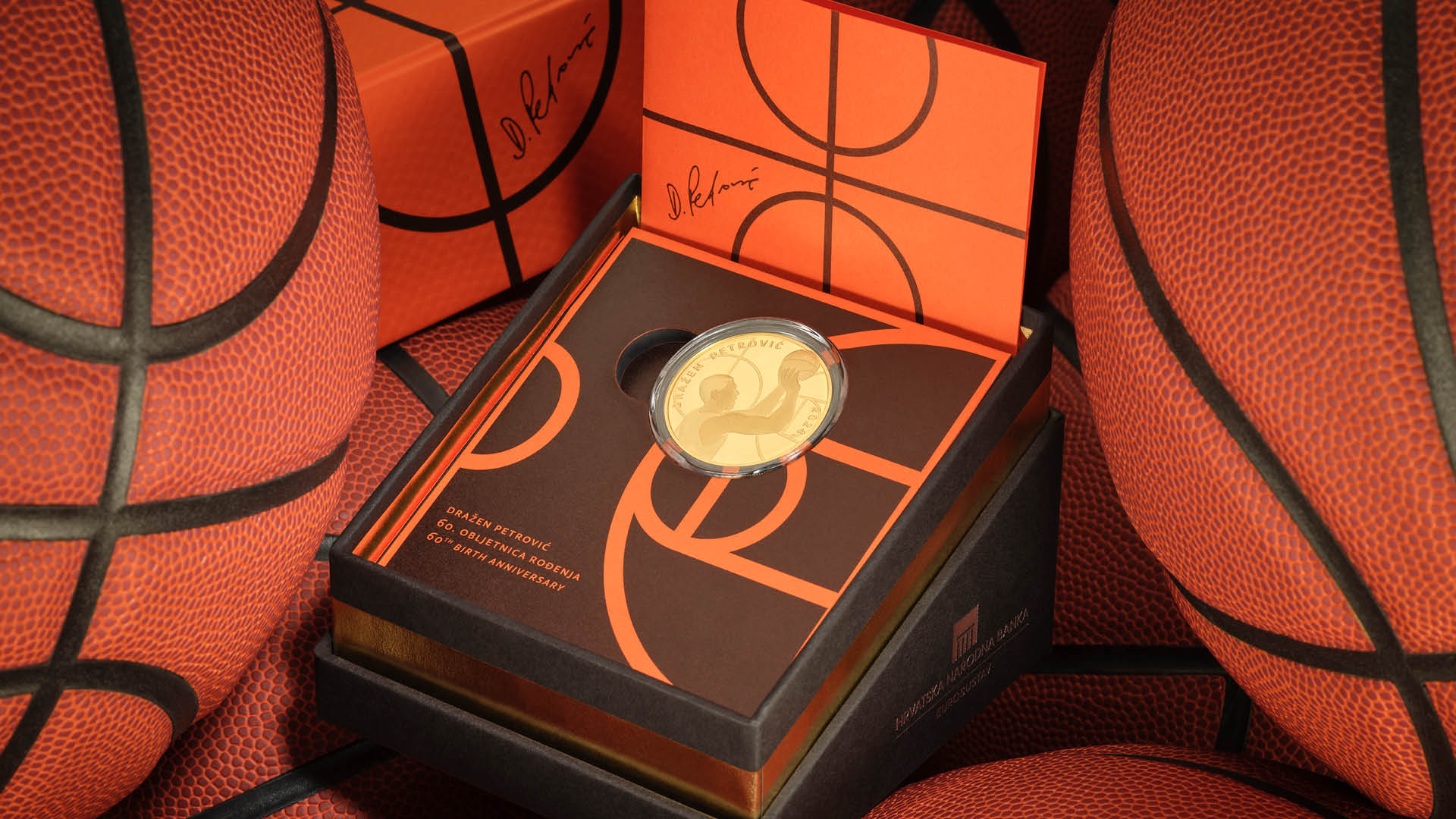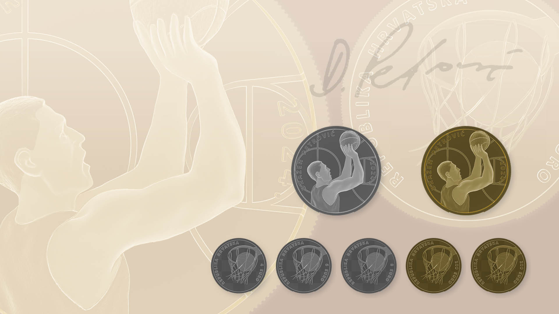 The Croatian National Bank issues "Dražen Petrović" gold and silver numismatic coins with commemorative motifs featuring Croatian basketball player Dražen Petrović who, as one of the greatest Croatian, European and world basketball players, left a very significant mark in world basketball. The gold numismatic coins are issued in the 200 and 100 euro denominations and the silver coins in the 8, 6 and 4 euro denominations.